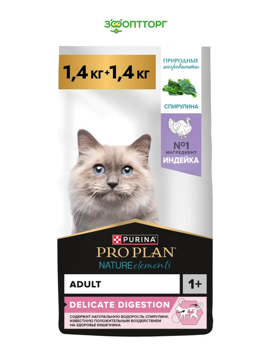 КомплектацияPro Plan Nature Elements для взрослых кошек с чувствительным пищеварением Индейка, 1,4 кг х 2 шт