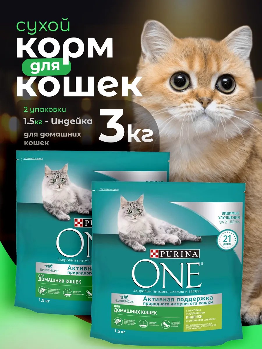PURINA ONE Сухой корм для кошек с индейкой 1,5 кг*2 шт