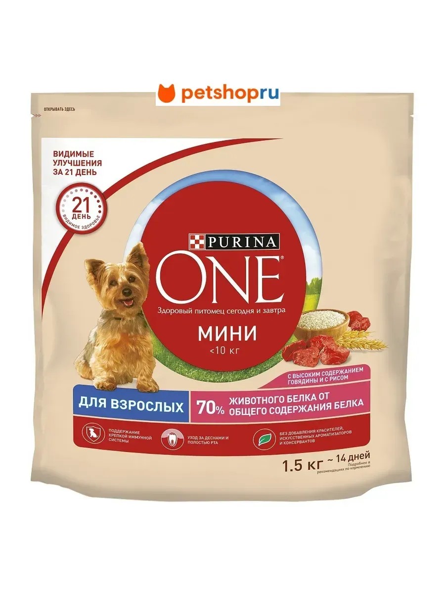 PURINA ONE Сухой корм для собак малых пород с говядиной, 1,5 кг.