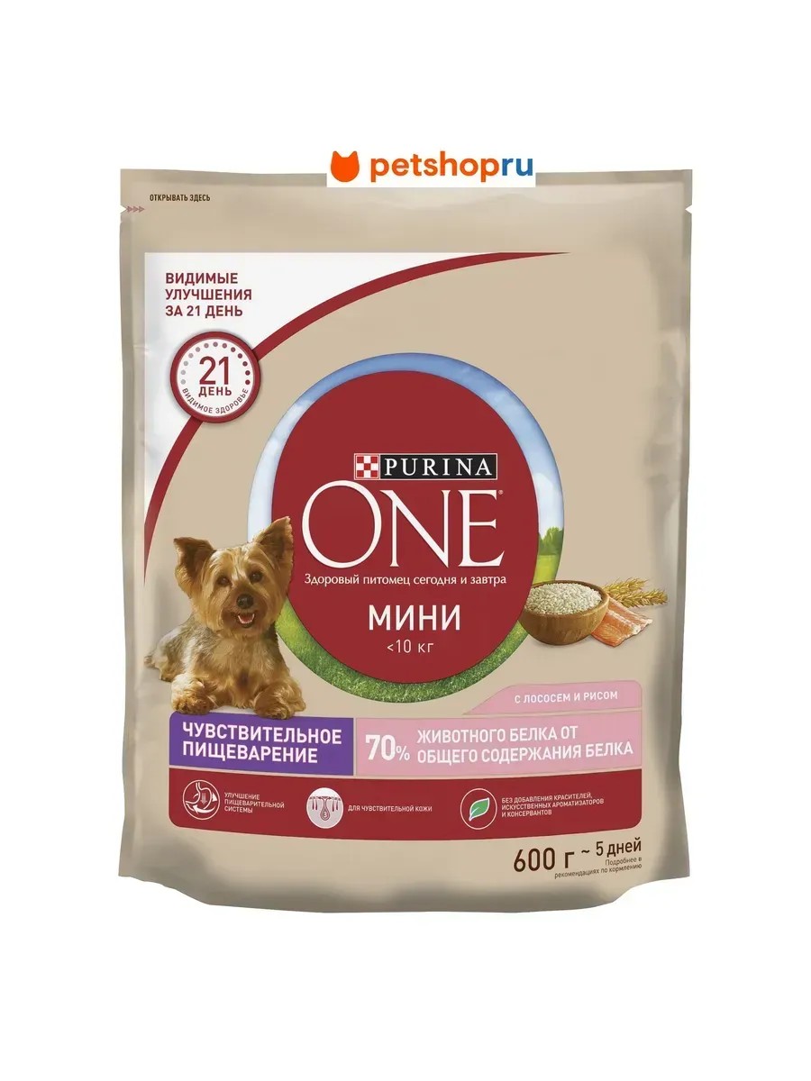 Знаете ли вы, что у собак мелких пород особые потребности в питании? Поэтому эксперты Пурина разработали корм Purina ONE(R) (Пурина Уан) Мини Чувствительная -- высококачественное, полнорационное питание, созданное специально для собак мелких пород с чувствительными пищеварением и кожей. Этот удивительно вкусный корм с лососем и рисом содержит натуральные пребиотики, улучшающие пищеварение. А высокое содержание Омега -3 жирных кислот и цинка помогает поддерживать кожу здоровой. Сочетание маленьких хрустящих крокетов и мягких кусочков*, специально разработанных с учетом размера вашей собаки, позволит ей наслаждаться вкусным кормом каждый день.