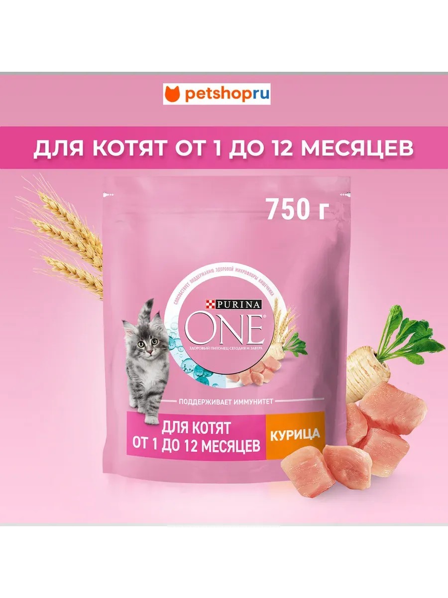 PURINA ONE Сухой корм для котят, курица и злаки, 750 гр