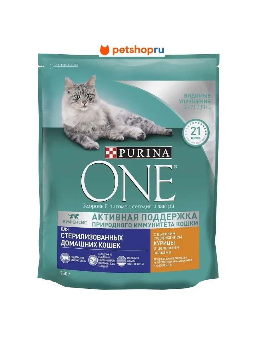 Корм Purina ONE(R) - это обогащенная формула, которая содержит высококачественные ингредиенты, включая пребиотик - цикорий, способствующий улучшению состояния микрофлоры кишечника кошки и поддерживающий крепкое здоровье и иммунитет Вашего питомца.