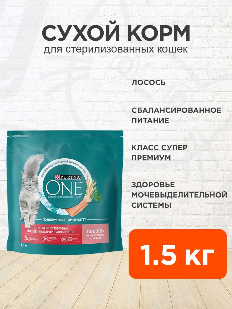 PURINA ONE Корм сухой для стерилизованных кошек лосось пшеница 1,5 кг