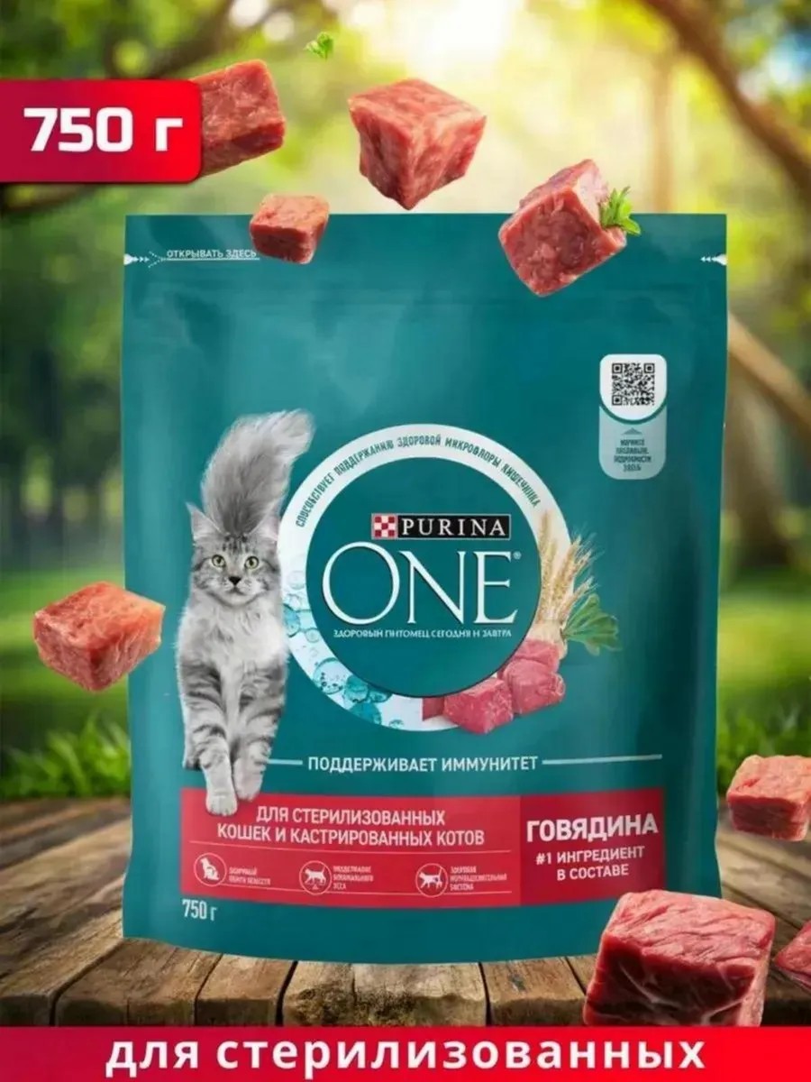 Корм Пурина с говядиной для стерилизованных домашних кошек 750 г — это: