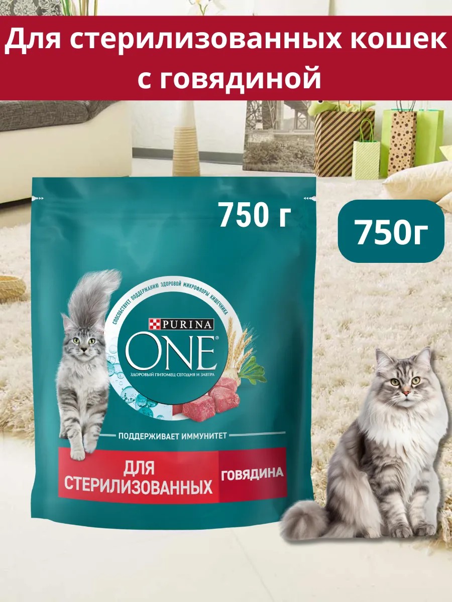 PURINA ONE Сухой корм для стерилизованных кошек с говядиной 750г