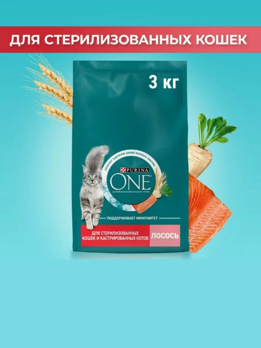 PURINA ONE Сухой корм для стерилизованных кошек с Лососем 3кг