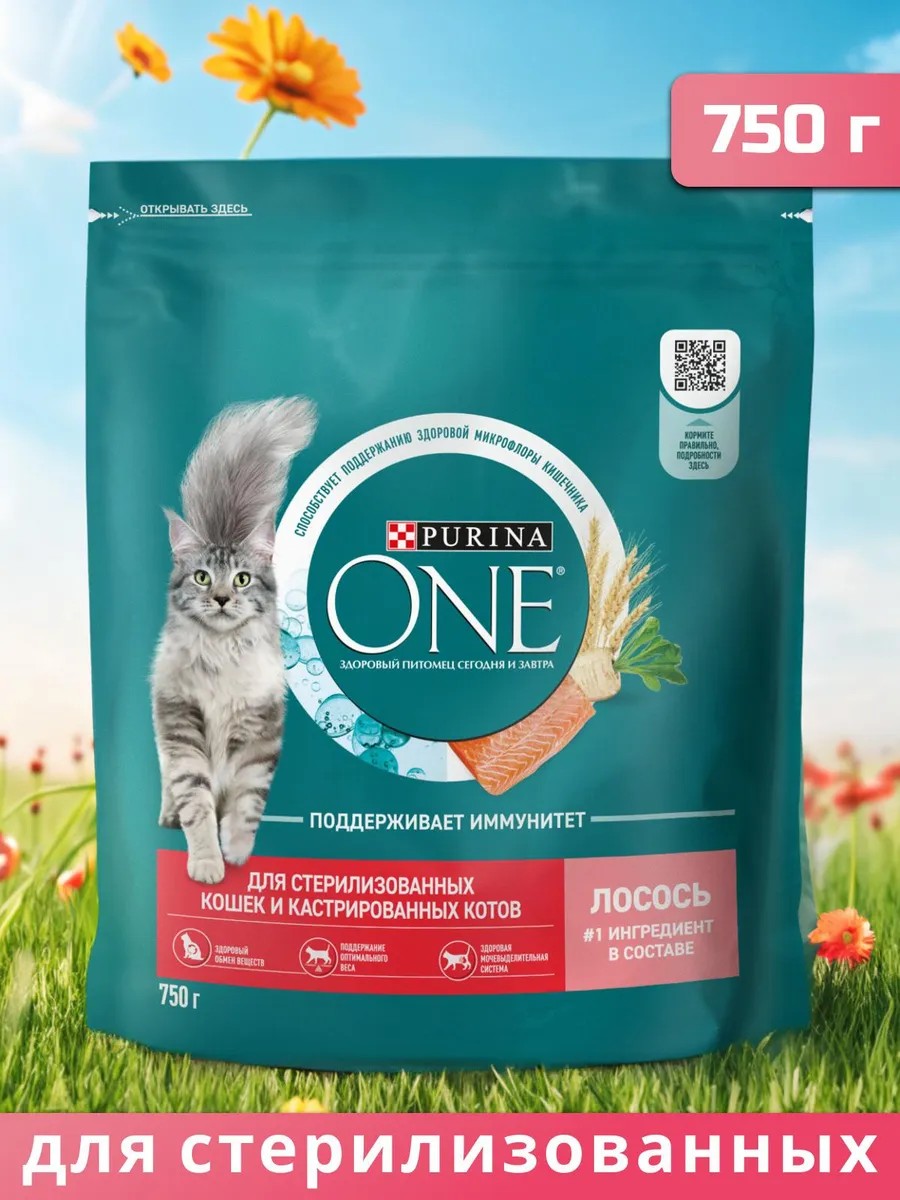 Корм для кошек Purina ONE — полнорационный корм, разработанный ветеринарами и диетологами Purina специально для стерилизованных кошек и кастрированных котов старше 1 года, которые живут в домашних условиях.
