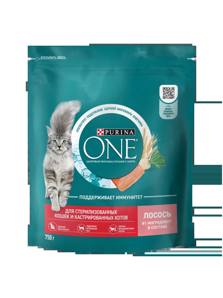 purina one Сухой корм для стерилизованных кошек с лососем 750гр