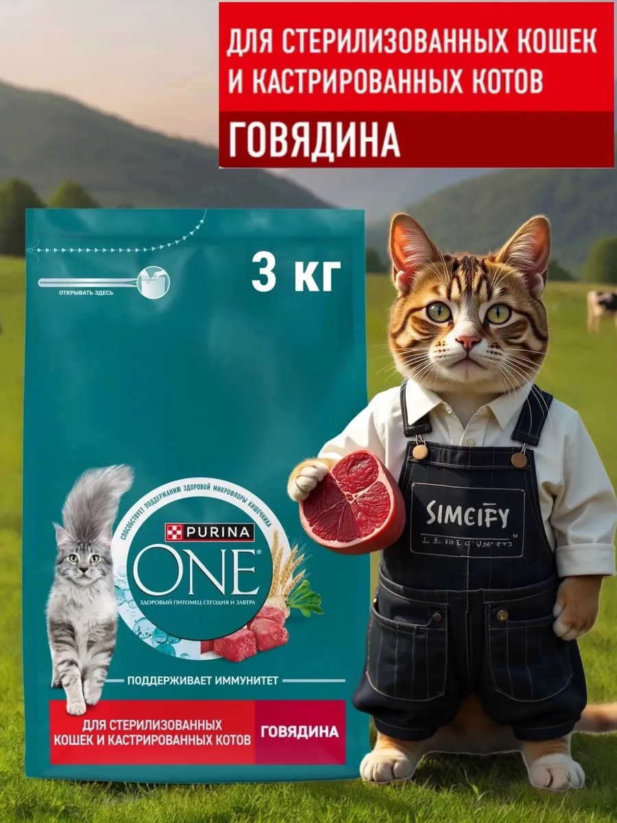 PURINA ONE Сухой корм с говядиной и пшеницей 3 кг