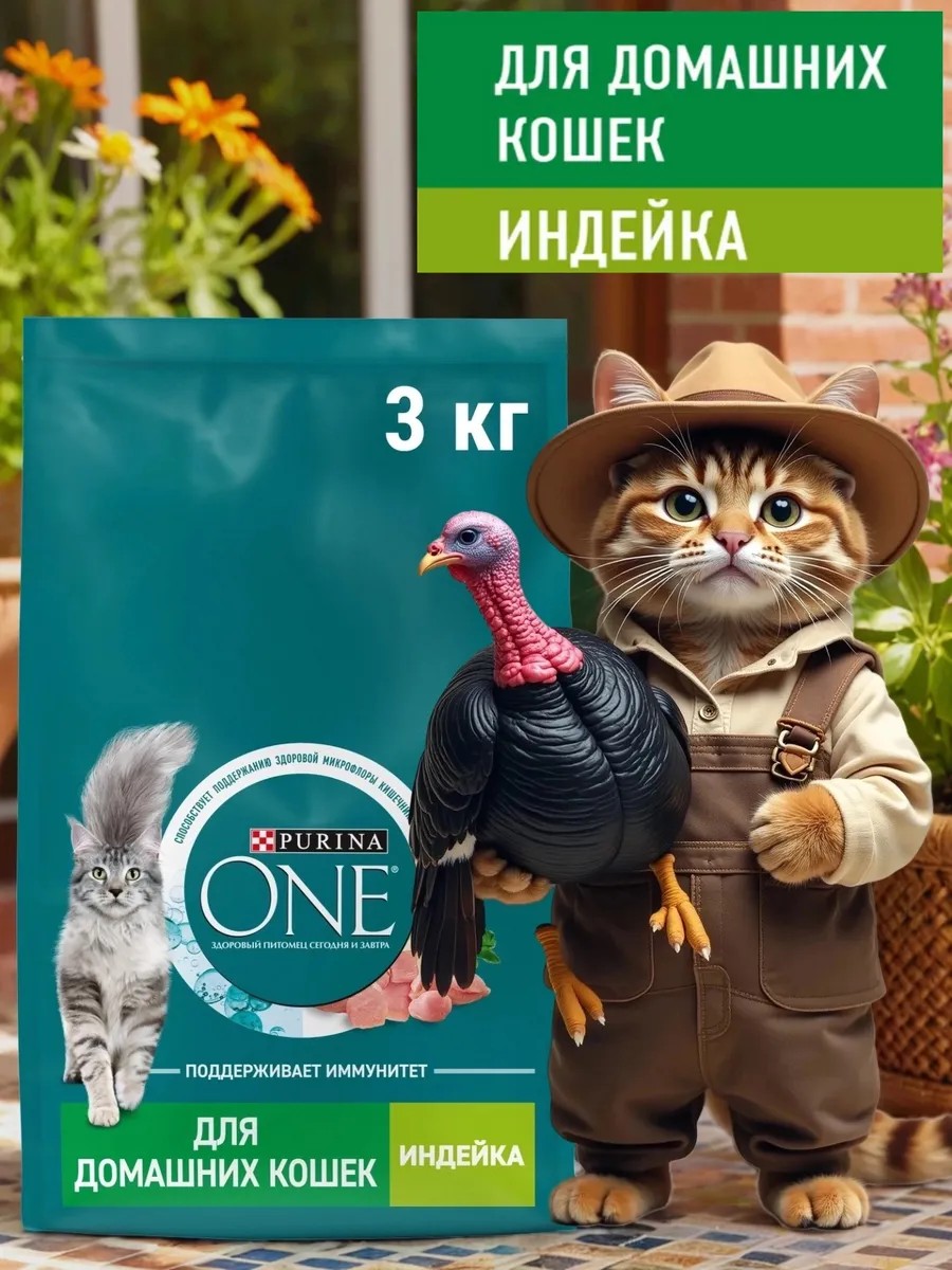 PURINA ONE Сухой корм с индейкой и злаками 3 кг