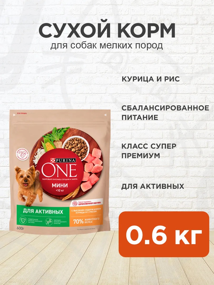 PURINA ONE Корм для собак сухой Мини для активных мелких пород 0,6 кг