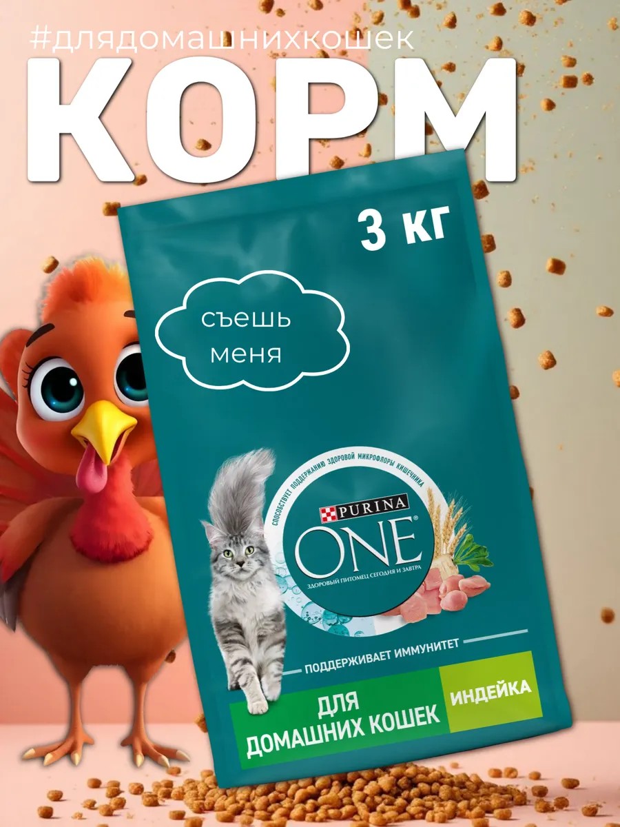 PURINA ONE Корм сухой Пурина для домашних кошек с индейкой 3 кг