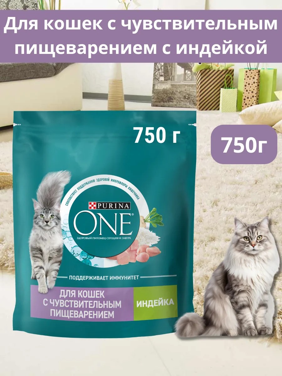 PURINA ONE Корм сухой чувствительное пищеварение индейка 750 г