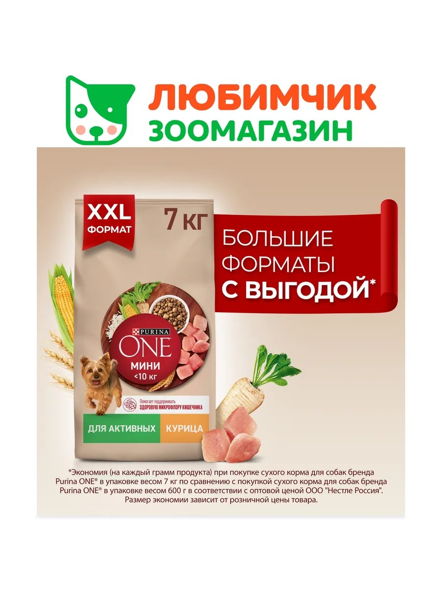 PURINA ONE Корм для активных собак малых пород, курица и рис 7 кг