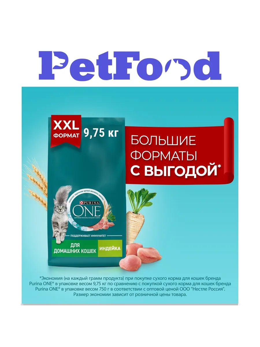 PURINA ONE Корм для взрослых домашних кошек всех пород, индейка 9,75 кг