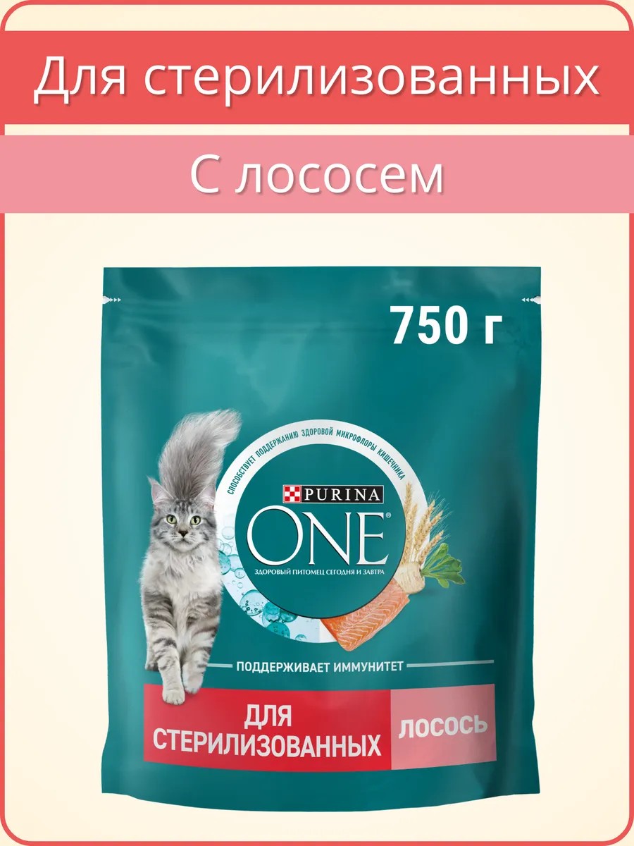 PURINA ONE Корм для кошек сухой 0,75 кг для стерилизованных с лососем
