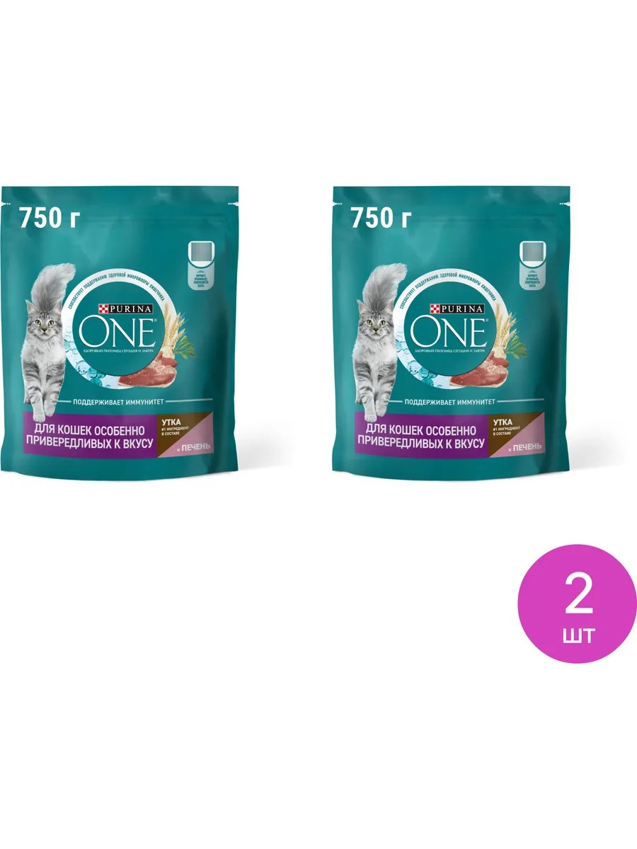 PURINA ONE Корм для кошек сухой Пурина Ван утка и печень, 750г, 2 шт