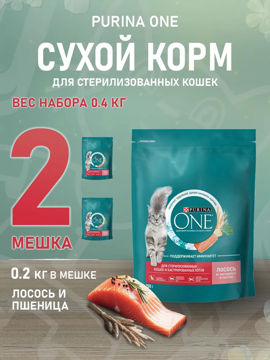 PURINA ONE Корм сухой стерилизованных кошек лосось пшеница 0,2 кг 2 шт