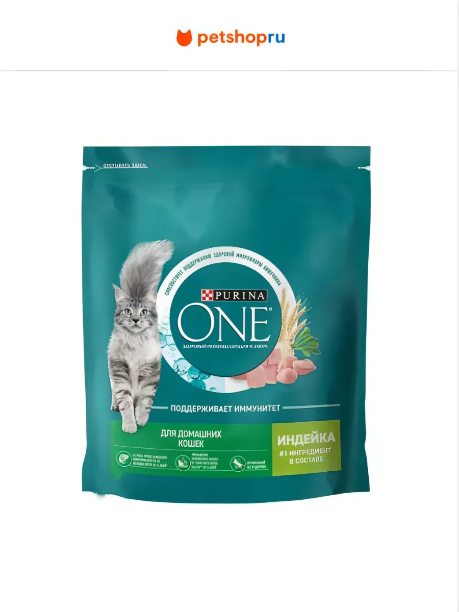 PURINA ONE для взрослых кошек, с индейкой и цельными злаками