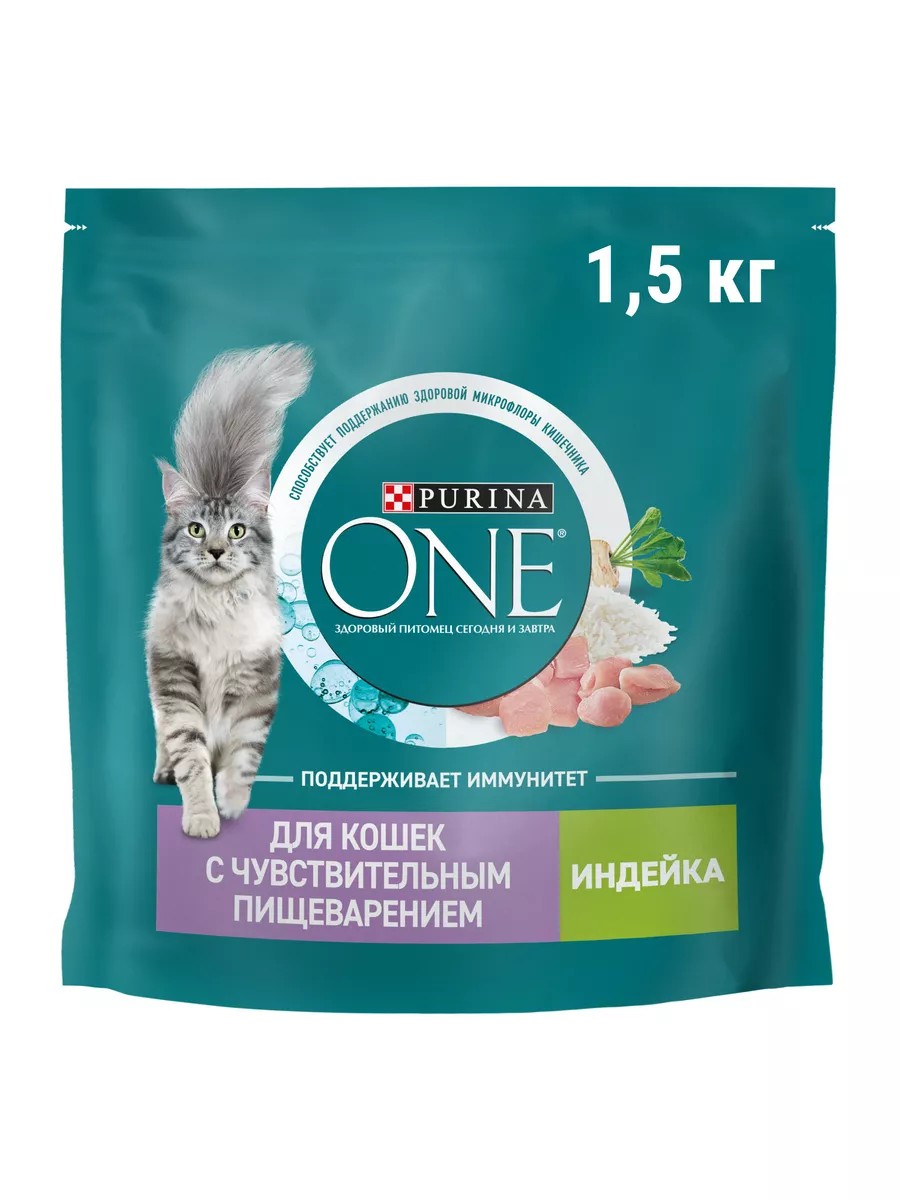 PURINA ONE Для кошек с чувствительным пищеварением индейка 1,5 кг