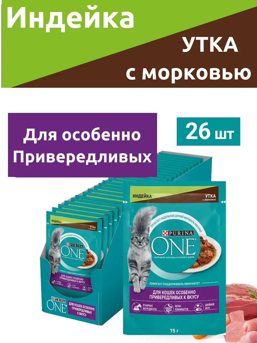 PURINA ONE Для привередливых кошек индейка и утка 75г х 26шт