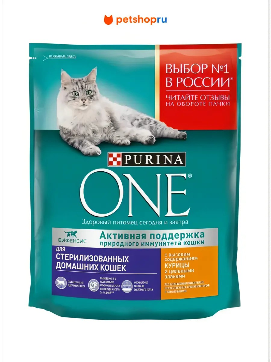 PURINA ONE для домашних стерилизованных кошек и котов, с курицей, 1.5кг