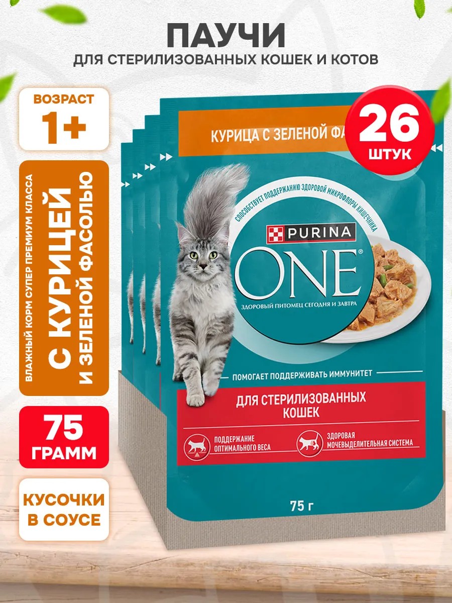 PURINA ONE Влажный корм для стерилизованных кошек курица 75 г 26 шт
