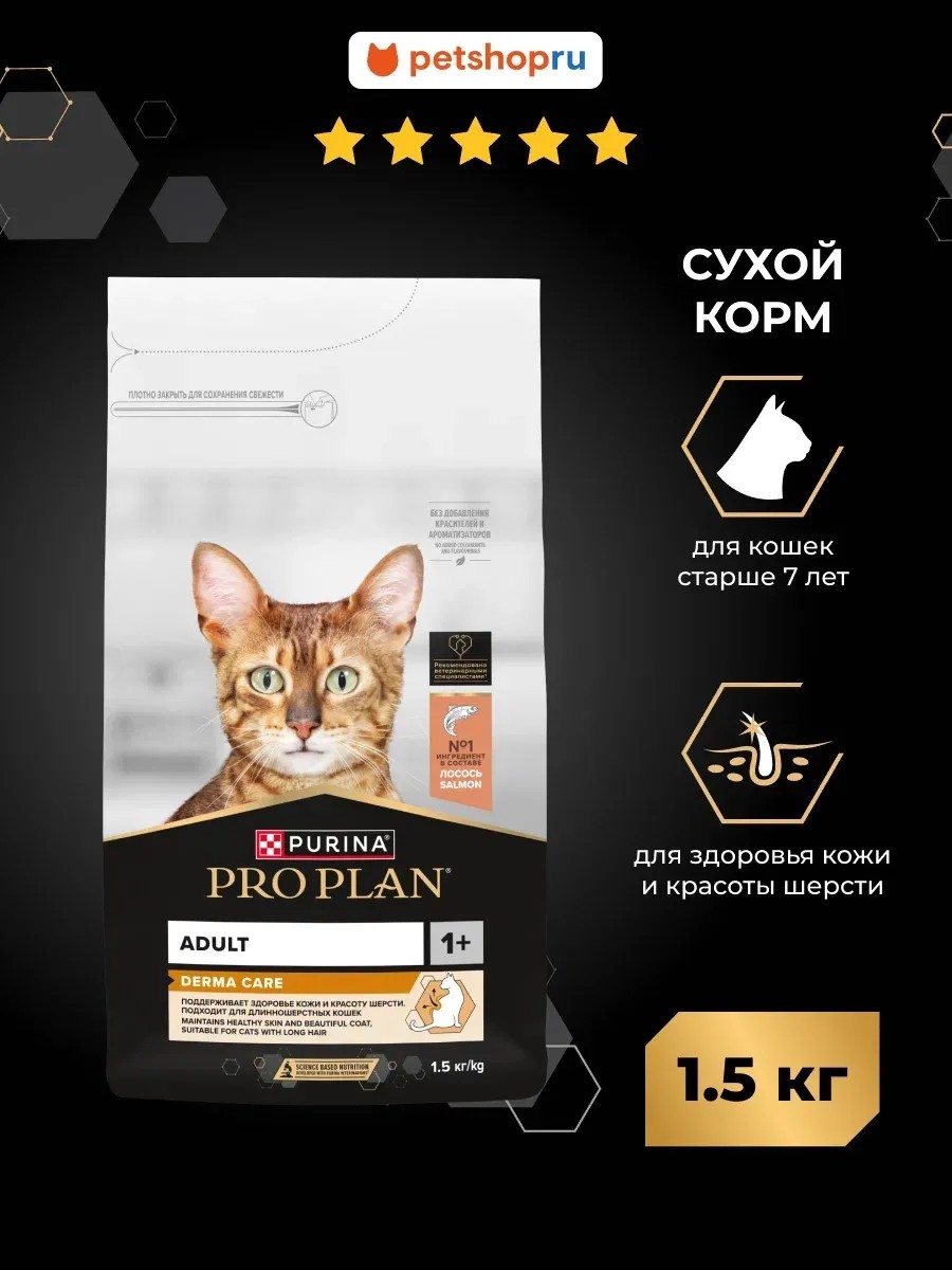 PURINA PRO PLAN Корм для кошек для кожи и шерсти с лососем 1,5 кг
