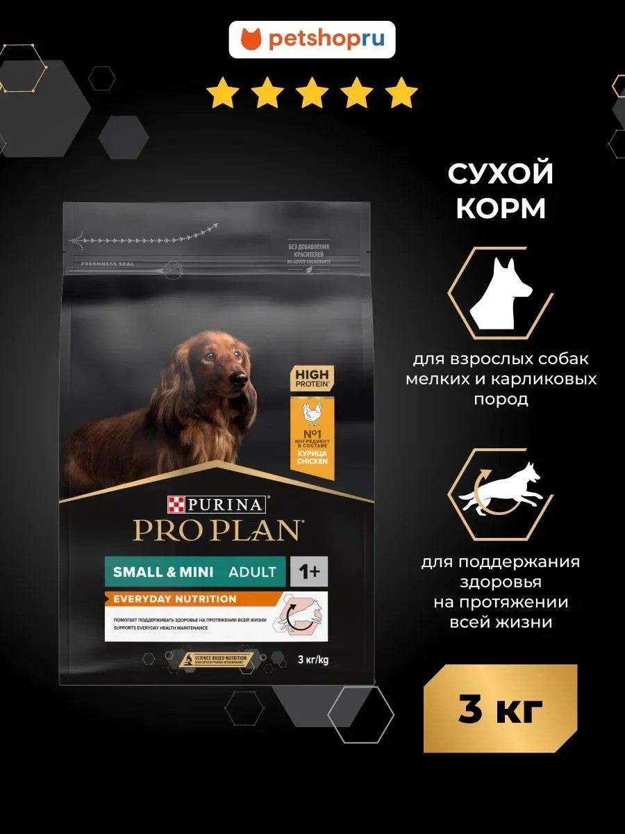 Изучая потребности собак на протяжении многих лет, команда квалифицированных ветеринарных специалистов и диетологов PURINA разработала сухой корм PRO PLAN Everyday Nutrition — ежедневный рацион с высоким содержанием курицы для взрослых собак мелких и карликовых пород. Этот полнорационный корм сбалансирован по составу и помогает поддерживать здоровье вашей собаки на протяжении всей жизни.