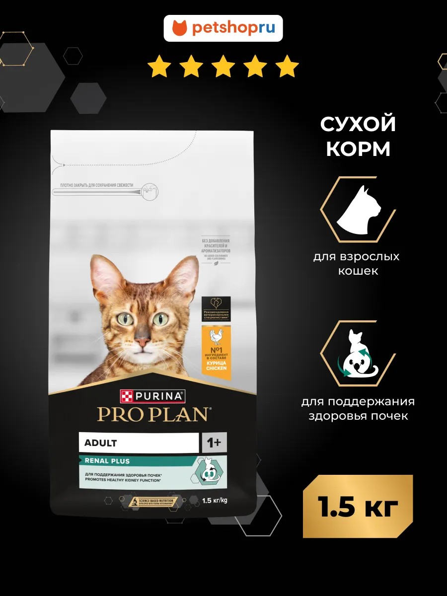 PURINA PRO PLAN Сухой корм для кошек RENAL PLUS с курицей 1,5 кг