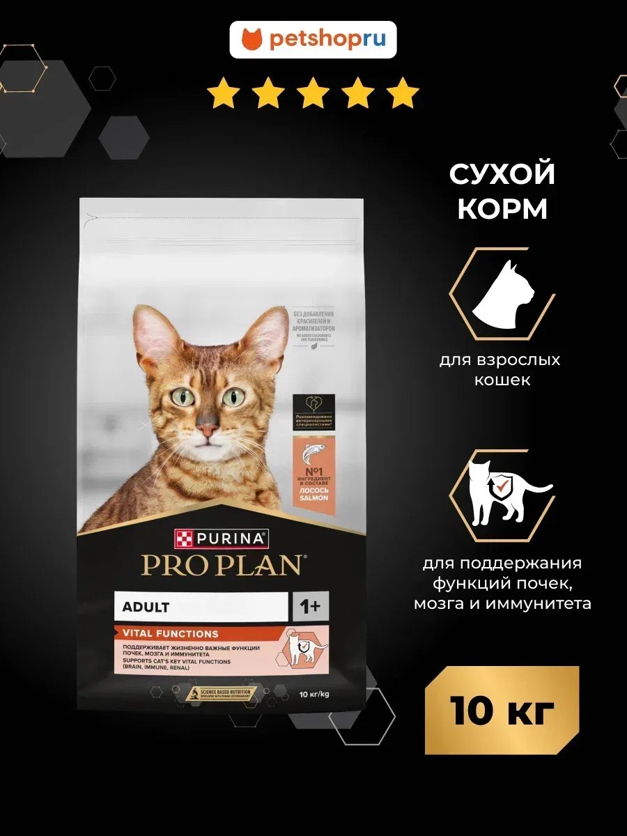 Команда квалифицированных ветеринарных специалистов и диетологов разработала сухой корм для кошек PRO PLAN VITAL FUNCTIONS для поддержания когнитивных функций мозга. Этот сбалансированный полнорационный сухой корм с лососем обогащен специальным комплексом нутриентов, которые помогают поддерживать умственную активность питомцев в любом возрасте.