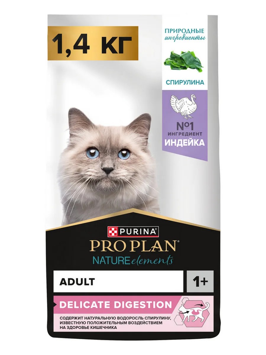 PRO PLAN experts have developed dry food for adult cats with natural spirulina algae, which is proven to strengthen the digestive system.