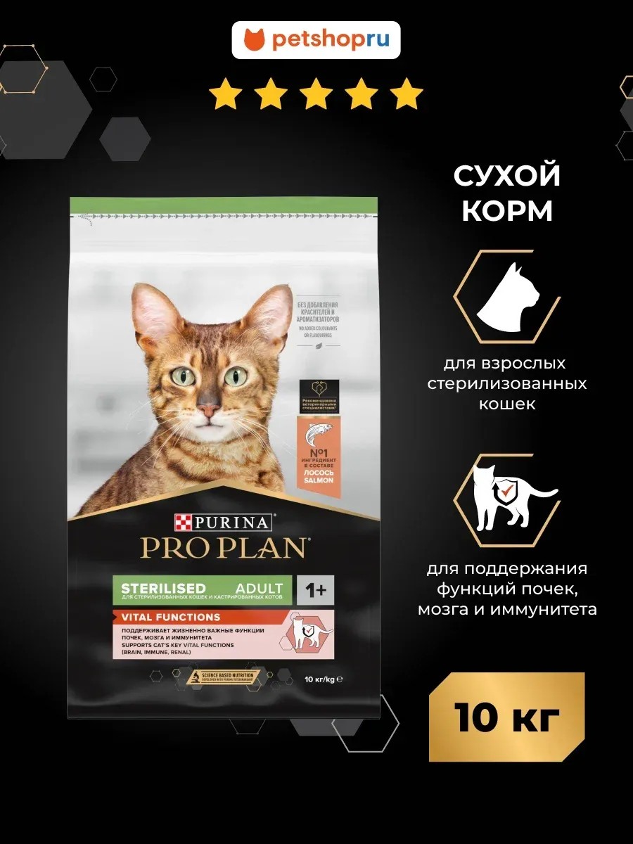 PURINA PRO PLAN Корм для стерилизованных кошек VITAL FUNCTIONS лосось 10 кг