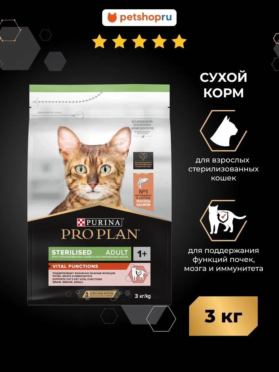 PURINA PRO PLAN Корм для стерилизованных кошек VITAL FUNCTIONS лосось 3 кг