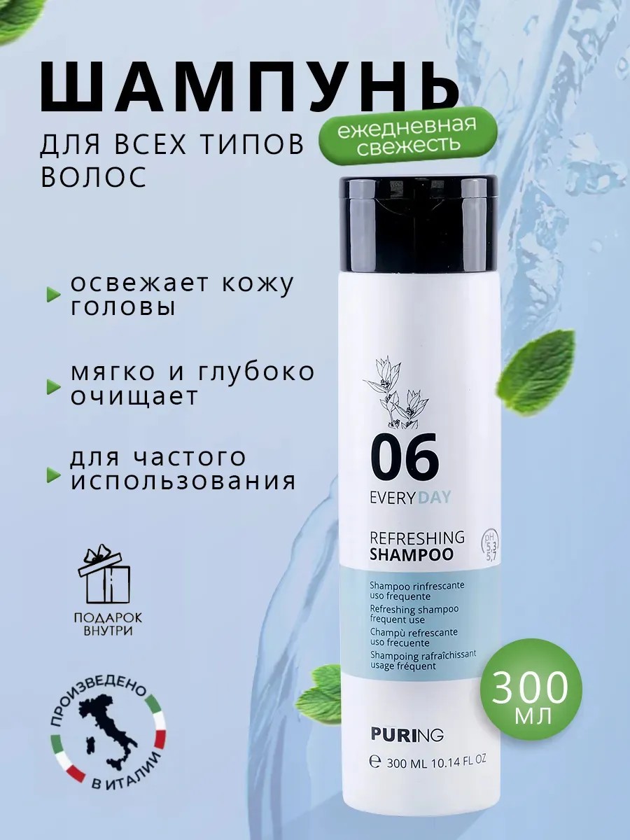Puring Шампунь для волос 06 EVERYDAY REFRESHING SHAMPOO, 300 мл - это шампунь с ментолом, который подходит для всех типов волос. *Внутри подарок для каждого покупателя. Подходит для женских и мужских волос.