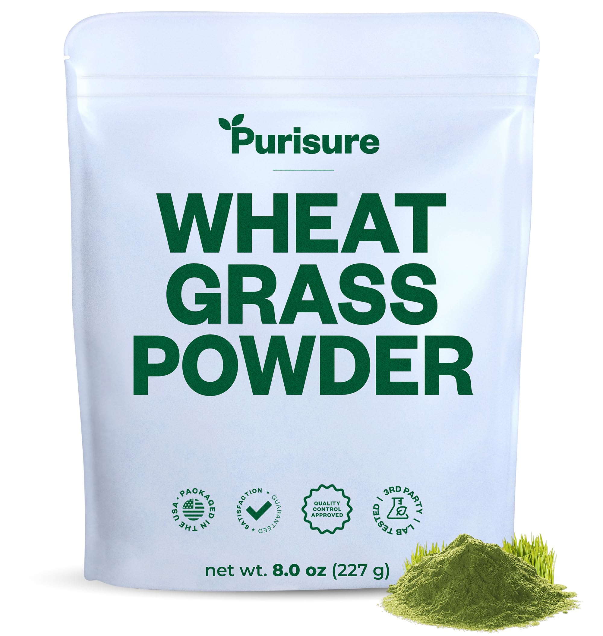 Purisure Wheatgrass Powder, 8oz, Wheat Grass Powder, Green Superfood for Salads, Smoothie and Shakes, Superfood Powder Rich in Immunity Vitamins, Fiber and Minerals, 76 Servings