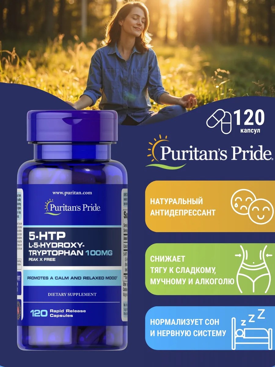 5 HTP (5-гидрокситриптофан) от Puritan's Pride - это натуральное средство, созданное на основе экстракта гриффонии, обладает широким спектром полезных свойств для вашего здоровья и благополучия.