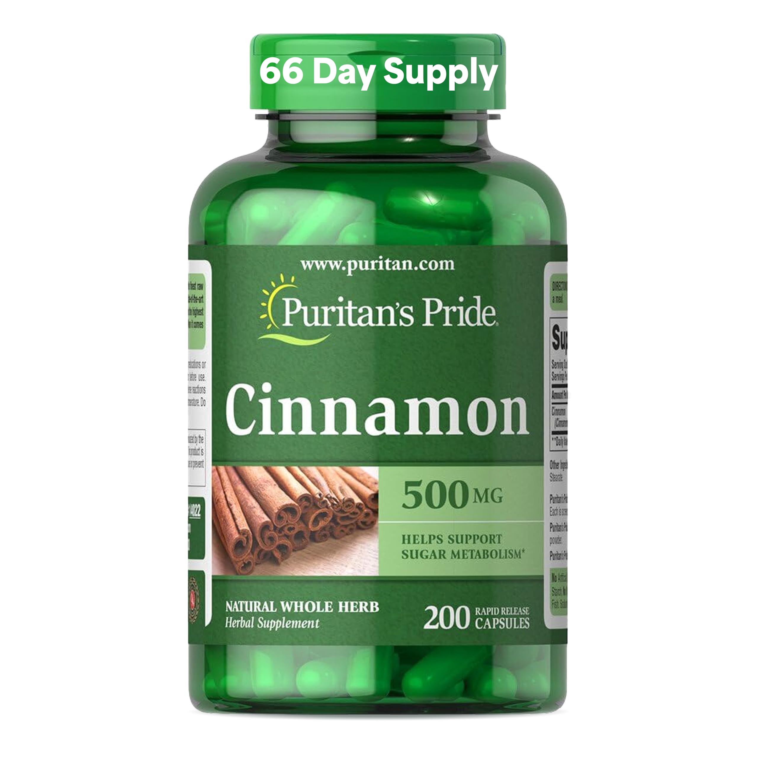 Puritan's Pride Cinnamon 500mg Supports Healthy Sugar Metabolism & Heart Health 200 Capsules 200 Count (Pack of 1)