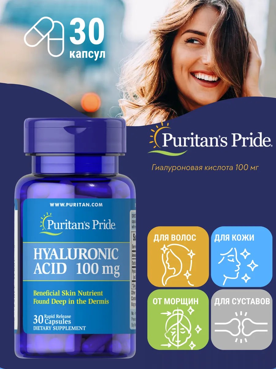 Гиалуроновая кислота 100 мг в капсулах от Puritan's Pride – универсальная поддержка красоты и здоровья изнутри