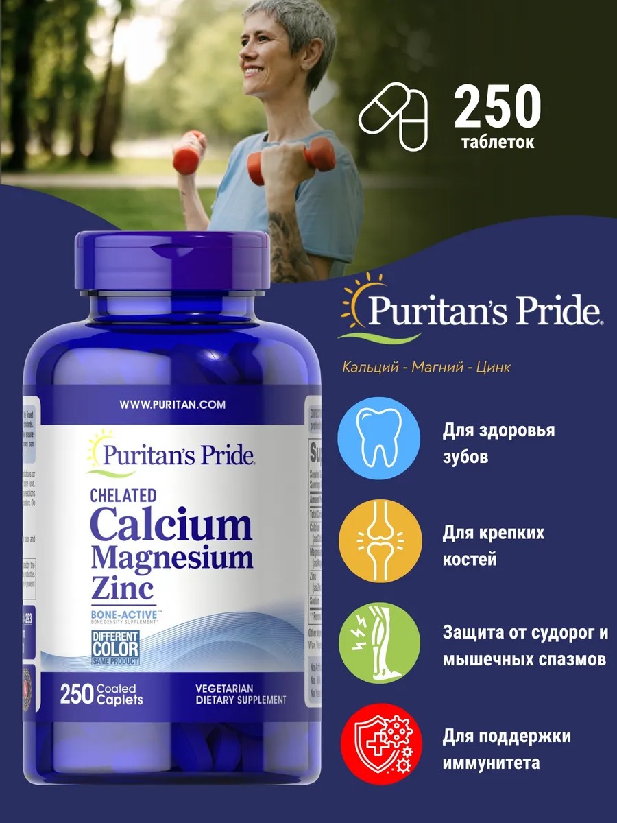 Puritans Pride Calcium Magnesium Zinc is a balanced mineral complex that helps support healthy bones, teeth, muscles, and the immune system.