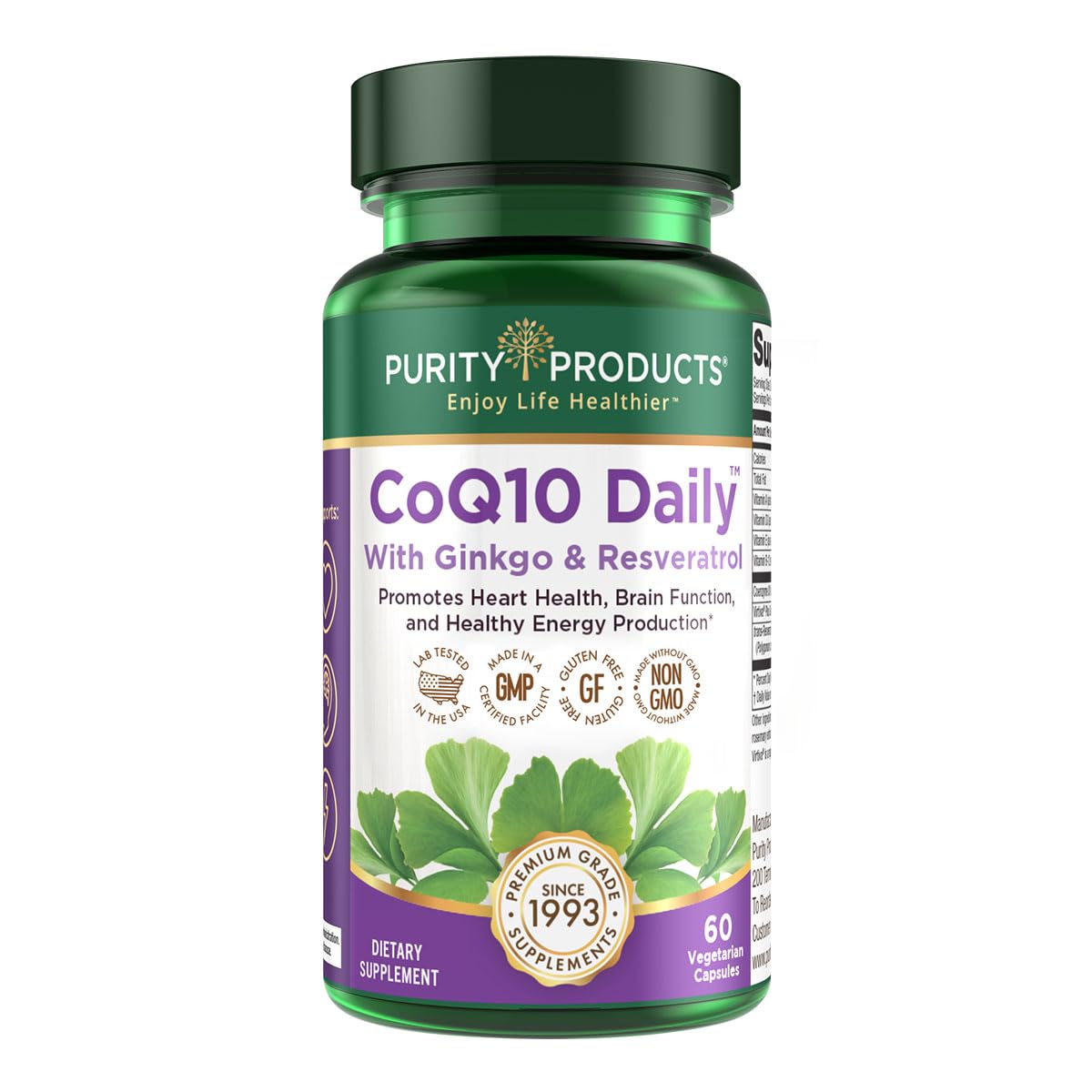 Purity Products CoQ10 Daily Super Boost with Ginkgo and Resveratrol from Supports Healthy Energy Levels and Healthy Brain Function - 60 Vegetarian Capsules 60 Count (Pack of 1)