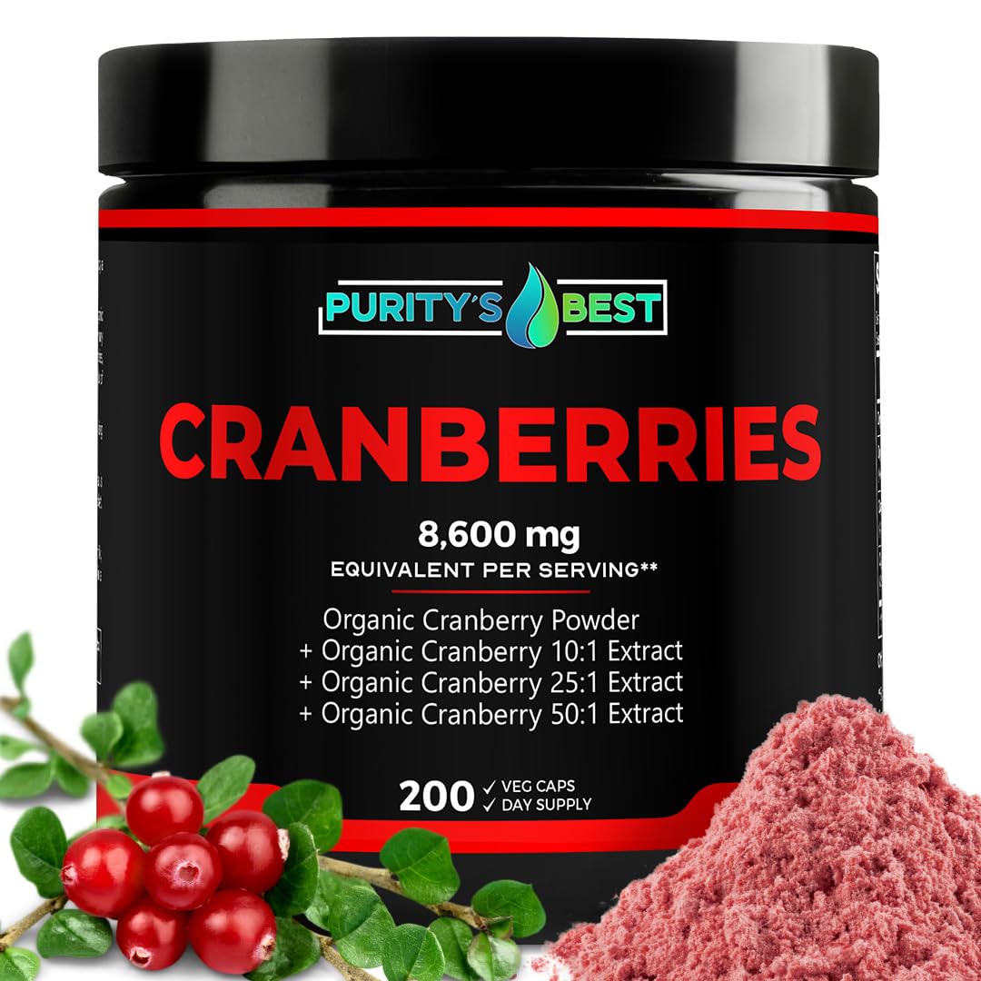 Purity s Best Cranberries Organic Cranberry Extract 8600mg Strength 200 Veggie Capsules Effective UTI Support Detoxifying Non-GMO Dietary Supplement Made in USA
