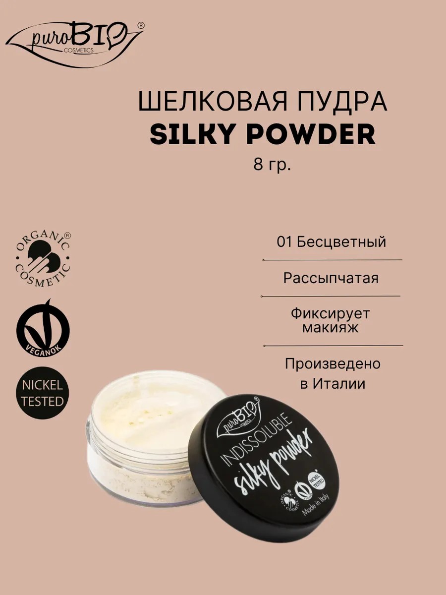| Комплектация | Пудра для лица шелковая рассыпчатая PuroBio- 1 шт. |