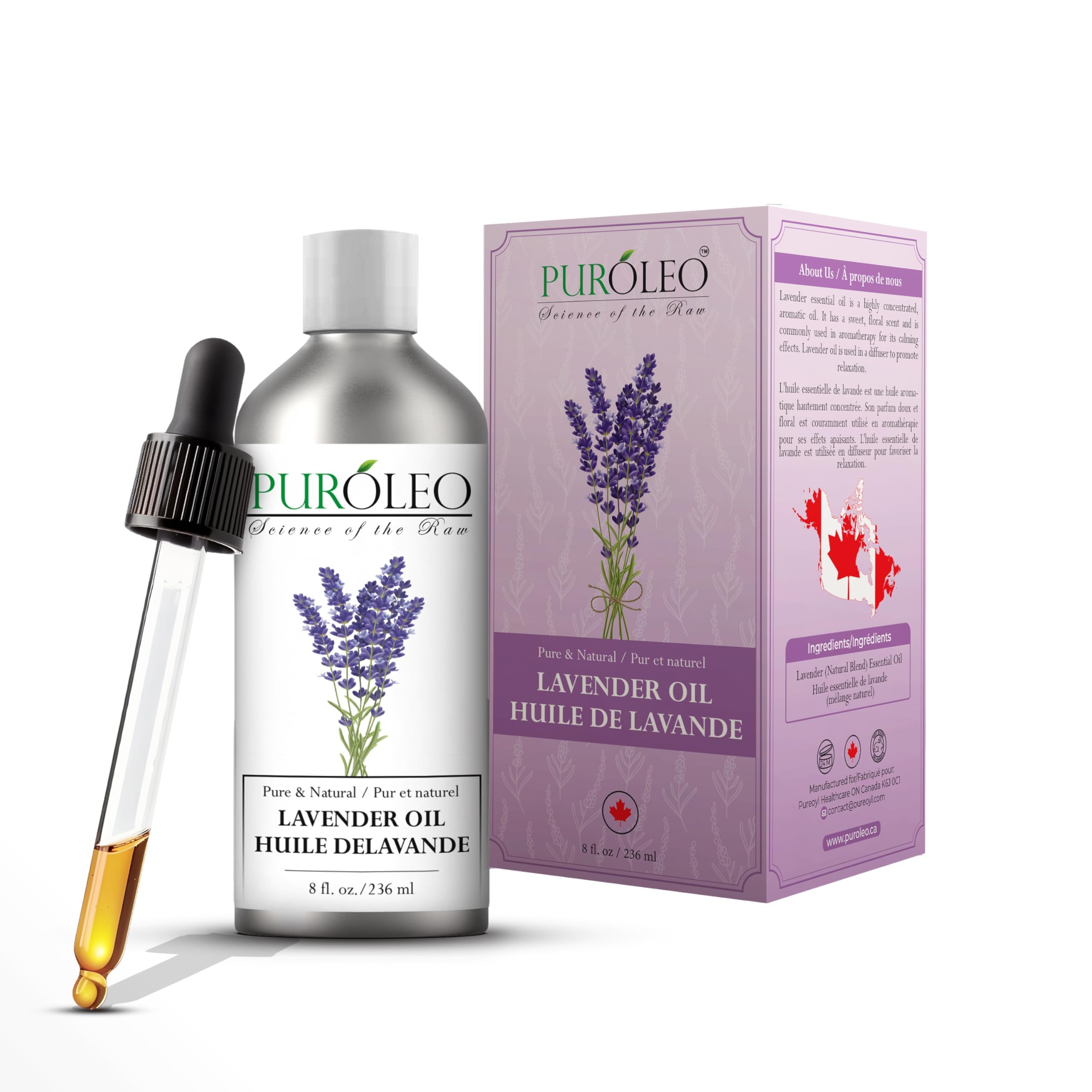 PUROLEO Lavender Essential Oil 8 Fl Oz/236 ML (Packed in Canada) 100% Pure Natural Undiluted for Aromatherapy Aromatherapy Oil for Sleep Relaxation Bulgaria France Oil Diffuser Lavender 8 Fl Oz (Pack of 1)