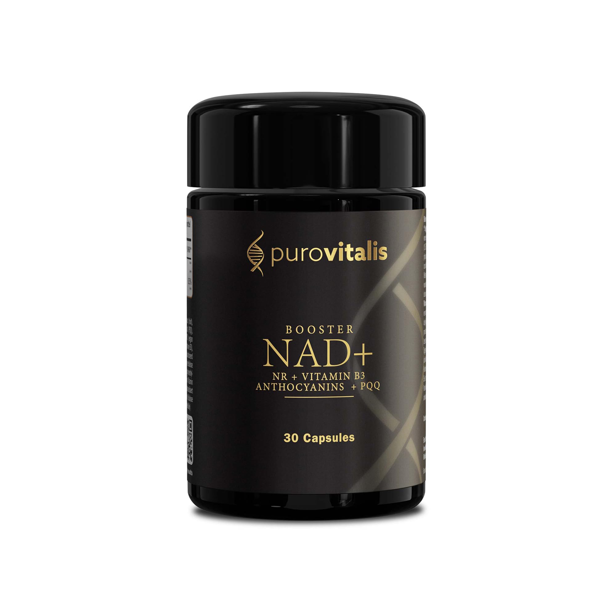 PUROVITALIS NAD+ Supplement NAD with Nicotinamide Riboside (NR) Vitamin B3 PQQ and Anthocyanin Cellular Energy Booster High Purity 1-Month Supply (30 Vegan Capsules)