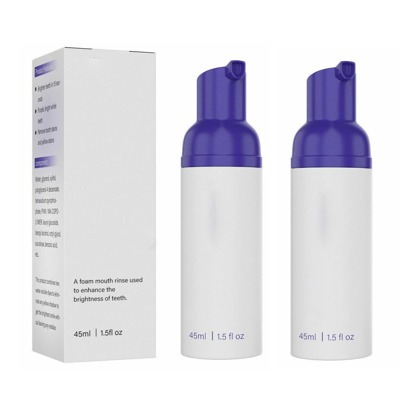 Purple Teeth Whitening, Tooth Stain Removal, Teeth Whitening Booster, Purple Toothpaste Features: 1. Effectively whiten teeth and make your smile more beautiful. 2. contains sorbitol, xylitol, glycerin, and other ingredients, which are very safe, can be used safely. 3.Formulated with nano hydroxyapatite, which can help replenish lost minerals and reduce sensitivity. 4.Improve sensitive teeth, improve enamel Specifications: Net content: 45ml Gross weight: 62g Packing size: 3.9 3.9 9.2cm Package Includes: 1 2 3pcs Foam