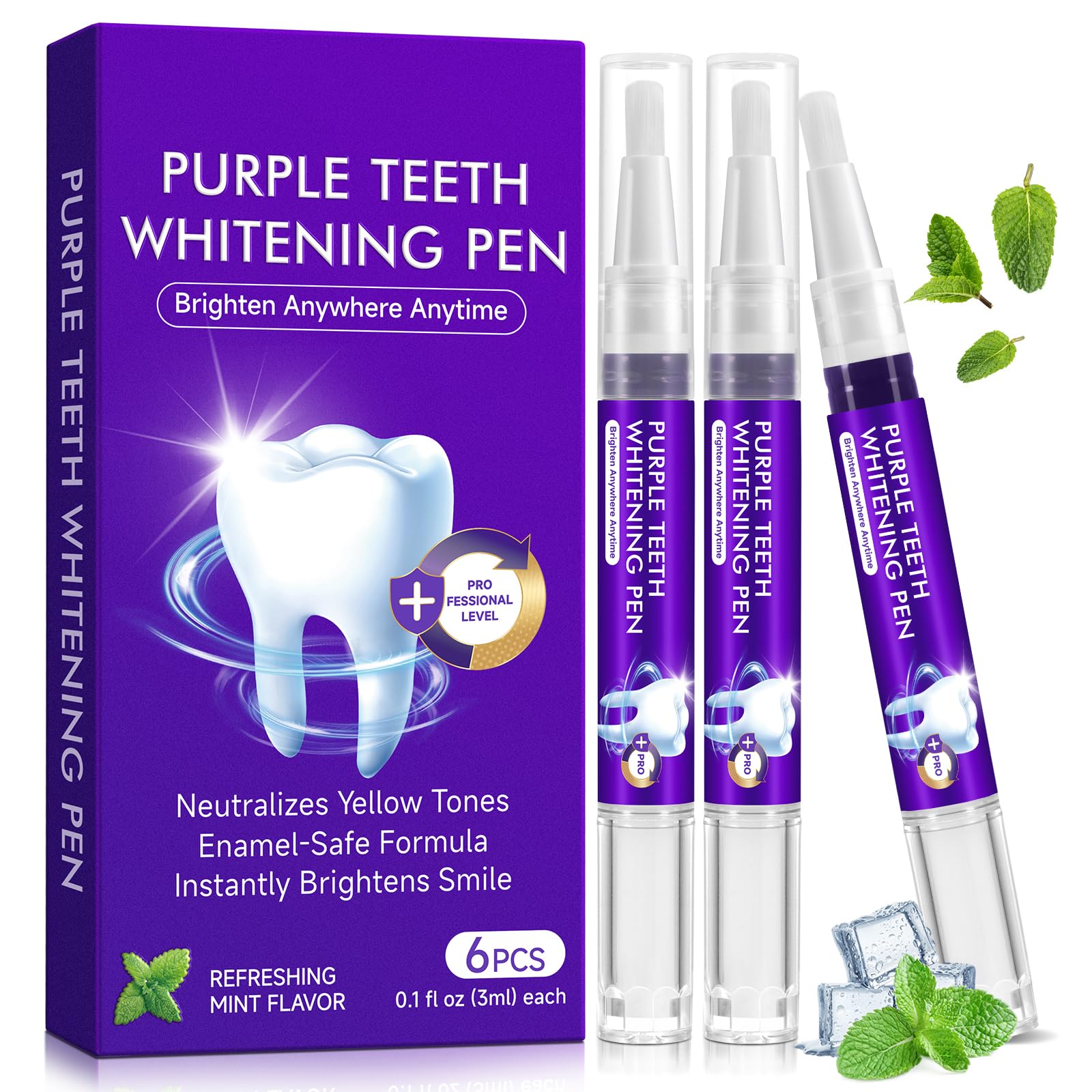 Compact and Portable: Perfect for a purse or travel kit for quick touch-ups and a confident smile on the go. Easy to Use: Clean the surface of your teeth before use, apply a thin layer of gel to your teeth, and wait 30 minutes without eating or drinking. Significant Results: Purple teeth whitening serum pen can be used for 1 minute a day for quick results, and with consistent use, your teeth can be whitened by 4-8 shades. Gentle Formula: Made with a premium formula that is gentle and non-irritating, perfect for sensitive teeth. Purple Teeth Whitening Pen: Features a refreshing natural mint flavor that keeps your mouth fresh and restores your naturally radiant smile.