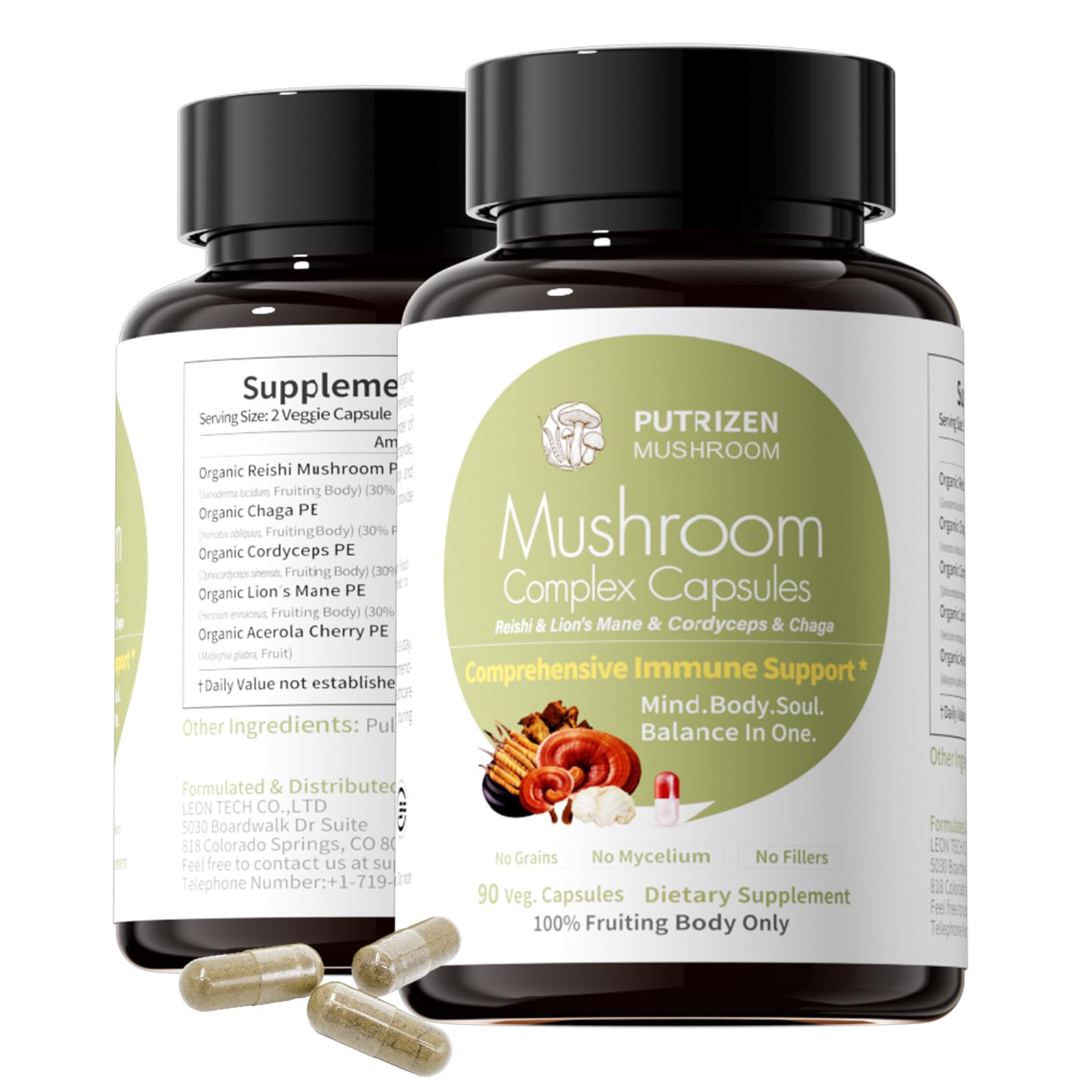 Trust quality: Produced in FDA-registered, cGMP HACCP facilities third-party tested by accredited labs such as SGS. Vegan capsules, no proprietary blends, no artificial colors or preservatives—transparent ingredients for reliable quality. Scene-Based Support: Morning mental launch during intense focus sessions after work for stress transition seasonal immune challenges. Aids mental performance, nervous system balance, and immune function to help you stay sharp, calm, and resilient. Effortless Daily Ritual: Sleek, portable bottle fits any desk or bag. Simple two-capsule daily routine—morning and evening—builds consistent support for mind and body, promoting balanced energy and recovery without disrupting sleep. Calm, Non-Stimulant Clarity: Caffeine-free cognitive support without jitters or crashes. Gentle synergy of 100 fruiting body extracts in vegan capsules clean-label with fully disclosed potencies easy to digest for daily mental and immune upkeep. For High-Pressure Professionals: PUTRIZEN 4-in-1 Mushroom Supplement, crafted with potent Lion's Mane, Reishi, Cordyceps, and Chaga, helps enhance mental clarity, build stress resilience, and support foundational immune defense—designed for those who think deeply and demand sustained high performance.