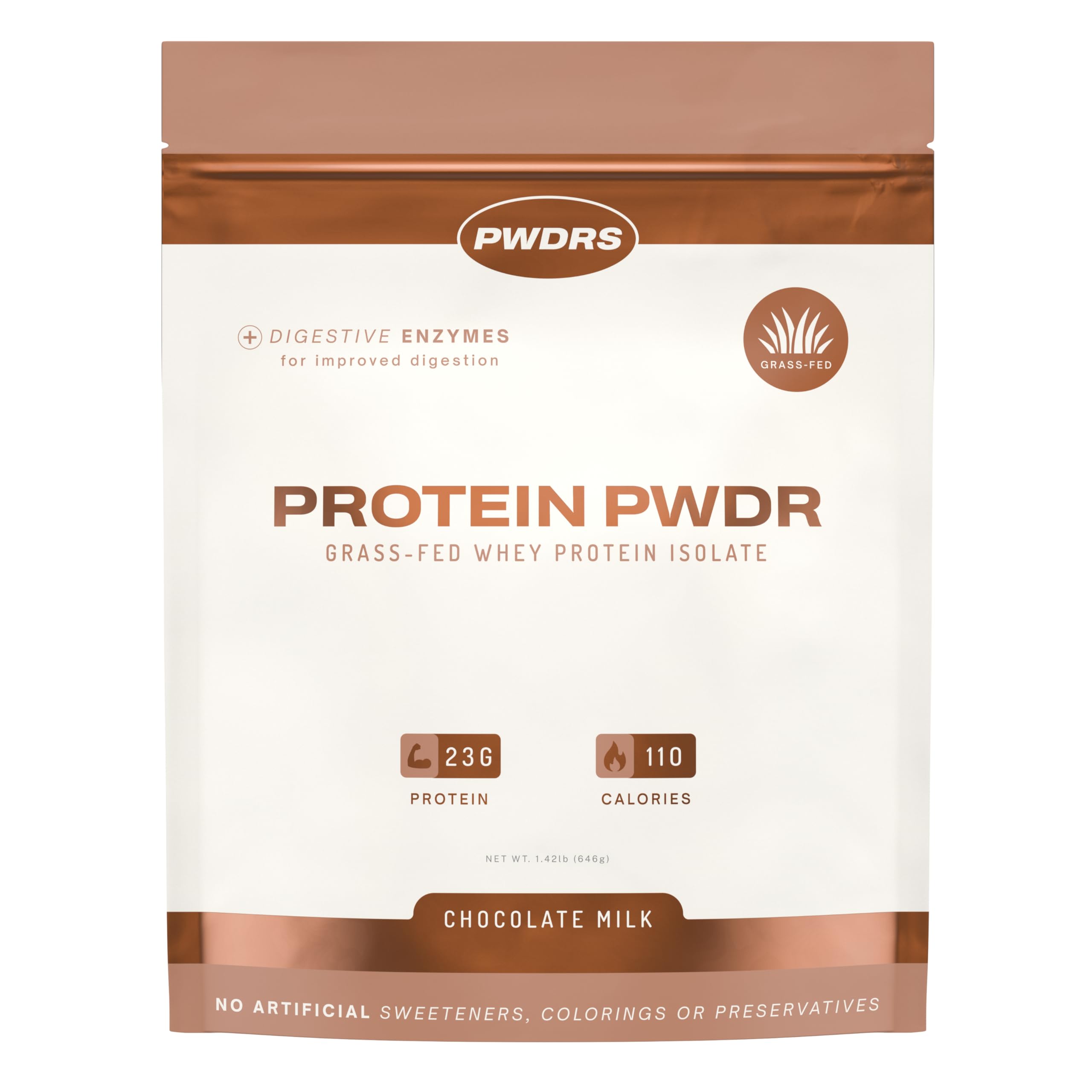 Fuel your body with clean, powerful nutrition using our Natural Whey Protein Isolate. Sourced from grass-fed cows and carefully filtered to remove excess carbs, fats, and sugars, this formula delivers a pure 25g of protein per serving. With a complete amino acid profile, including essential BCAAs, it supports lean muscle growth, faster recovery, and long-lasting energy without unnecessary fillers or artificial additives. Whether you're an athlete, fitness enthusiast, or simply looking for a healthier protein option, this is protein you can trust. Designed for smooth mixing and a light, delicious taste, our whey isolate blends effortlessly into water, smoothies, or recipes for a convenient boost anytime of day. Naturally flavored and sweetened, it's free from GMOs, gluten, soy, and artificial sweeteners—making it a clean choice for your lifestyle. From post-workout shakes to daily nutrition support, this protein powder helps you stay strong, lean, and energized while aligning with your wellness goals.NATURALLY FLAVORED AND SWEETENED – Crafted with clean ingredients like monk fruit and stevia for a delicious, guilt-free taste. EASY TO DIGEST - Our protein powder is made with a clinically proven enzyme blend that enhances protein digestion and absorption. HIGHEST QUALITY CERTIFICATION - PWDRS is third party tested and certified, ensuring the highest standards of purity and effectiveness. HIGH PROTEIN LOW CARB – Delivers 22g of protein per serving with virtually zero sugar and minimal carbs, perfect for lean muscle growth. 100 NATURAL WHEY PROTEIN ISOLATE – Clean, pure protein sourced from grass-fed cows, free of artificial flavors, colors, or sweeteners.