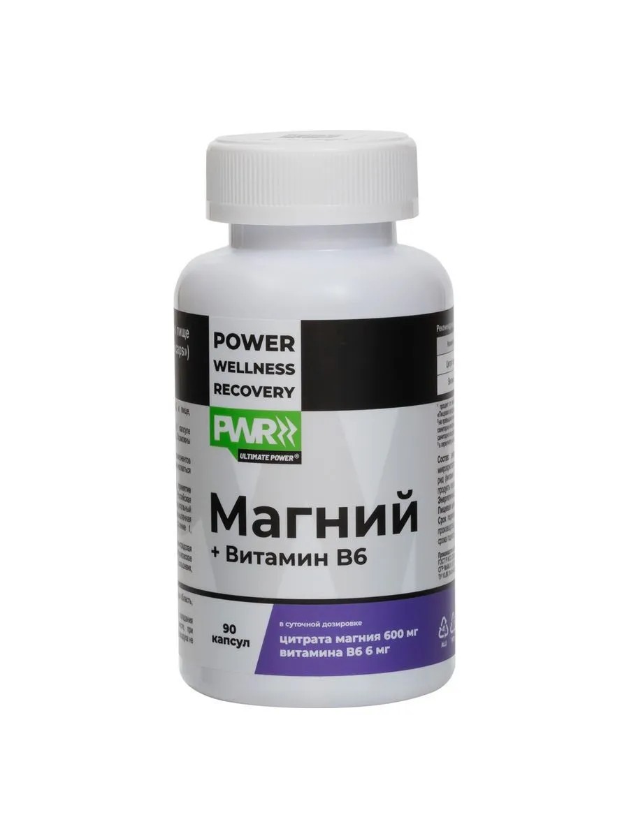 PWR Magnesium B6 Capsules N90 Capsules 760mg. Additional source of magnesium and vitamin B6. As a biologically active food supplement. Magnesium citrate, gelatin capsule (gelatin, water), microcrystalline cellulose carrier, pyridoxine hydrochloride. Recommended as a dietary supplement, an additional source of magnesium and vitamin B6. . TR TS 021/2011 TR TS 022/2011 TR TS 029/2012 -